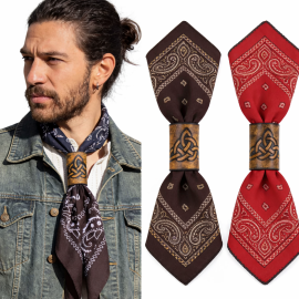 Leather scarf slides are a stylish and functional accessory designed to hold scarves securely while adding a refined, handcrafted look. Made from durable leather material, these scarf slides feature a smooth finish and structured shape that complements bandanas, neckerchiefs, and lightweight scarves. The wide center opening allows easy insertion an..